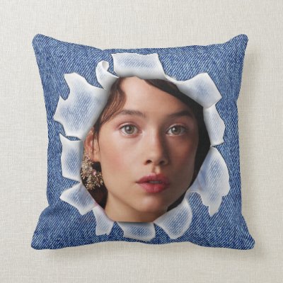 Replace the girls photo for your own behind this denim textured pillow myAccessories