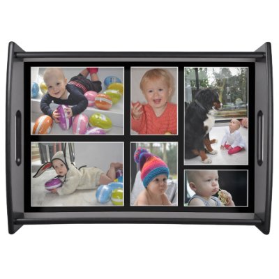 Personalize this serving tray with your own pictures by uploading your own 300DPI photos To replace the photo bring the photo template to the front first and when your photos are in position click on the back button so it will appear behind the black frame. myAccessories