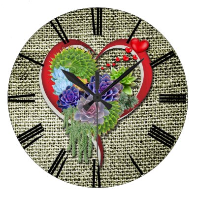 Ad: Succulent Plant Decor Within a Heart Large Clock